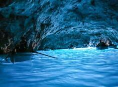 意大利卡普里岛属于石灰质地形,岩石峭立岩石间有许多奇特的岩洞,其中最著名的就是“蓝洞”。蓝洞被誉为世界七大奇景之一。蓝洞的洞口在悬崖的下面,洞口很小,只能乘坐小船才能进入。