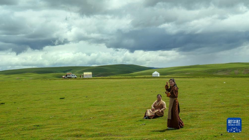 8月11日拍摄的羌塘草原风景。羌塘草原位于西藏自治区北部,平均海拔超过4500米。进入雨季以来,羌塘草原上植被茂盛,动物日益增多,呈现一片生机勃勃的景象。新华社记者 邵泽东 摄