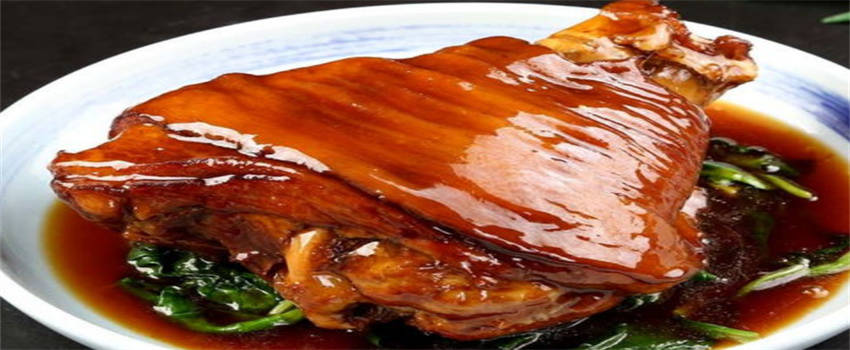为了达到入味的效果,然后放在清水里面浸泡半个小时左右,再把锅里面放入清水,把肘子放入里面在煮两个多小时左右的时候,基本上就已经输了,适当的去加姜汁,麻油,醋,味精,盐都淋在肘子上,最后勾芡,味道不错。