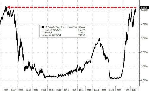 美国 2 年期国债收益率隔夜上涨 8.1 个基点至 5.182%,为 2006 年以来最高水平,而 10 年期美债收益率则进一步突破了 8 月高点,升至 2007 年 10 月以来的最高水平 4.412%。