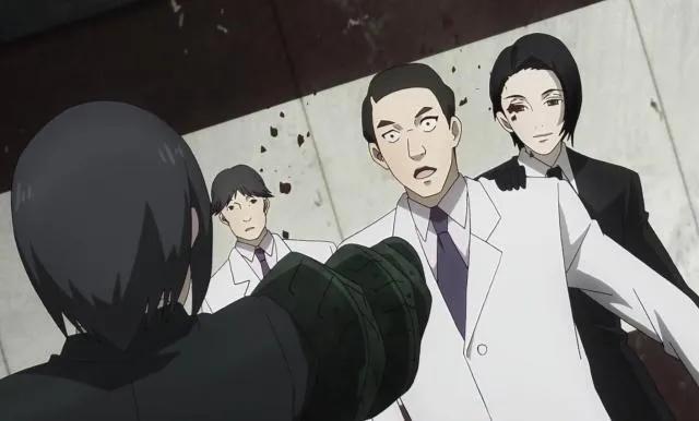 在金木恢复记忆,变成黑发背叛了CCG,金木对上有马贵将的同时,旧多和V组织的人遇上了独眼枭(泉姐、店长的女儿、高槻(guī)泉 )双方马上就展开了战斗。旧多身旁的V组织成员的实力都非常的强大,是特等搜查官的级别,结果还是被独眼枭给碾压了,转眼间就被干掉。