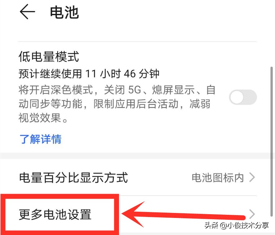 打开【电池设置】之后,我们选择下方这个【更多电池设置】我们点进去