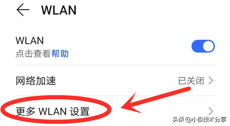 打开之后,我们直接选择下面的【更多WLAN设置】开关打开