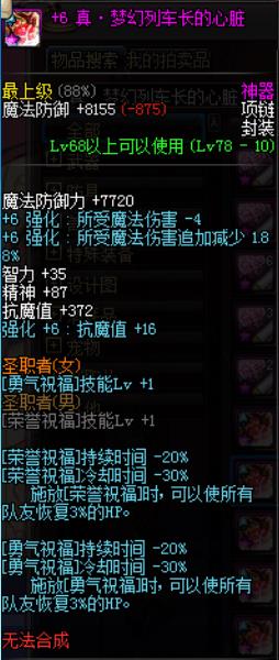 一条项链就要100块钱,还只是白板的,1级勇气祝福对高端奶妈的提升确实非常大,不过这条项链能卖这么贵都是因为产出太少,只能通过加百利的设计图来制作,所以勇士们搬砖的时候包里可一定要放点钱哦,万一出心脏设计图那可就能大赚2000w哦~