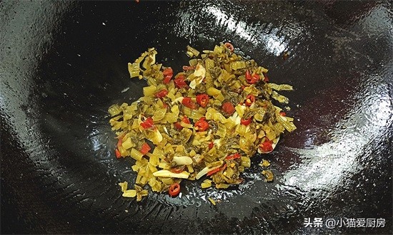 (3)泡酸菜要炒出酸菜的水汽,这样煮出来的酸菜才能充分释放出味道。