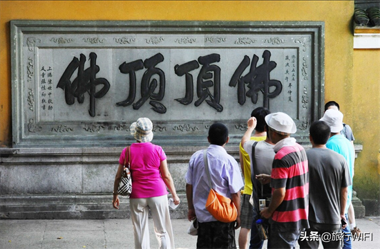 从继续向前,途径百步沙、仙人井、朝阳洞、龙寿庵、法雨寺、香云亭等,边走边欣赏路两边的风景和人来人往的行人,不知不觉就来到了普陀山的主山——佛顶山,海拔约291米。站在山顶,远眺四周,视野宽阔,放眼千里云雾缭绕,如果早上登顶,可以看日出美景,到望台处看辽阔的山海景色。