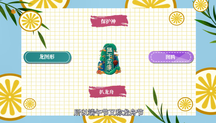 端午节的每一种别称都有它的由来。首先,龙舟竞度最早是古代南方吴越先民祭龙祖的一种祭祀活动形式,南方先民使用舟船普遍,往往在舟船画上龙图形作为部族的图腾或保护神。扒龙舟是端午节的一项重要活动,所以端午节又称龙舟节。