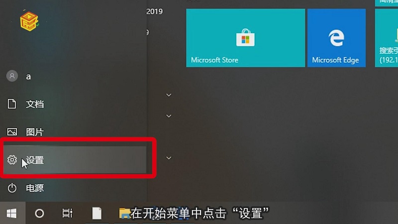 1、鼠标左键点击开始按钮,在开始菜单中点击“设置”。