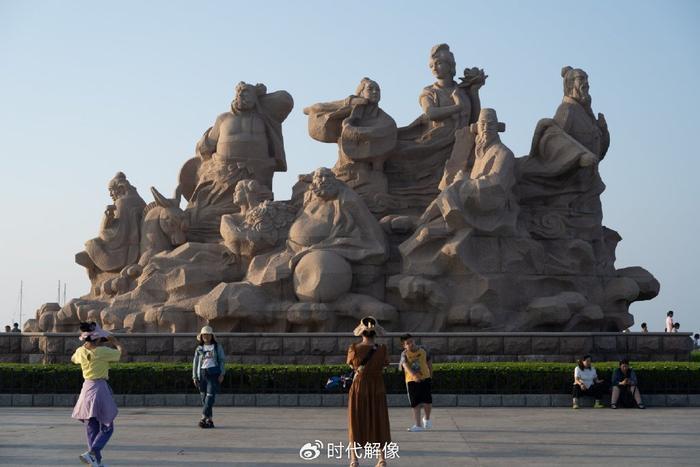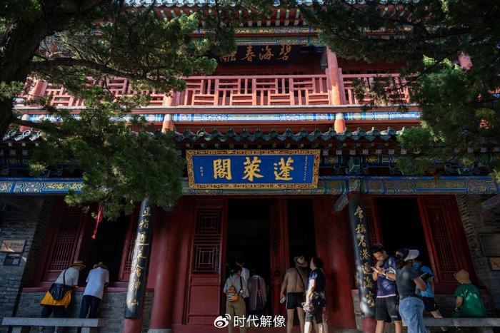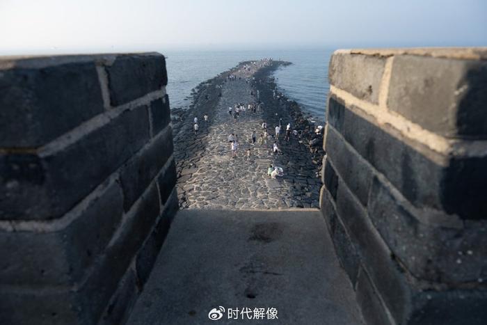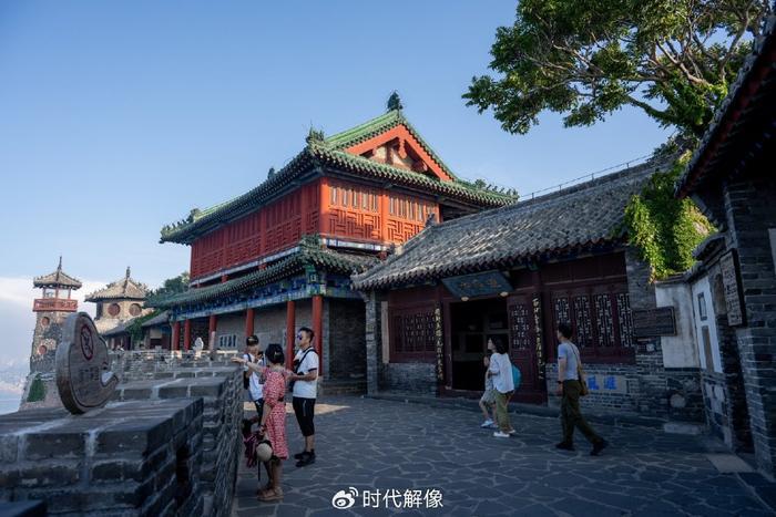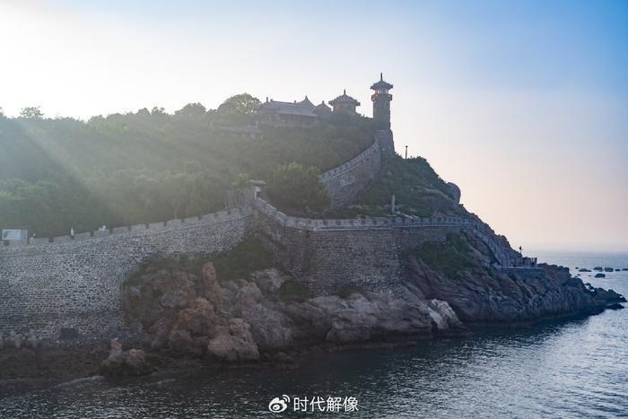 2023年7月9日,山东省烟台市蓬莱区,游客参观中国古代四大名楼之一的蓬莱阁。蓬莱阁建在丹崖山之上,始建于北宋,有“人间仙境”的美称。