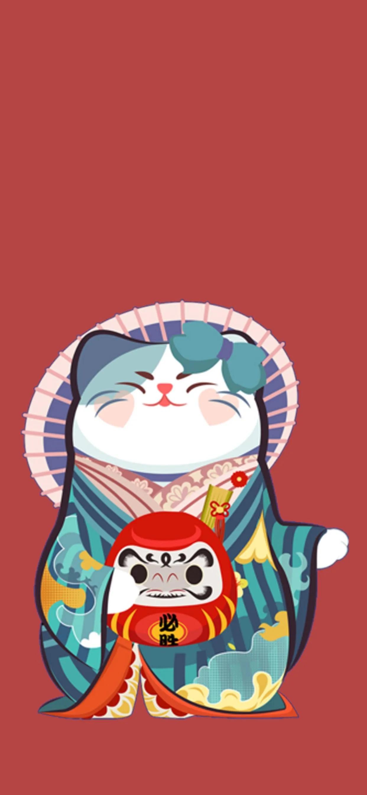 招财猫喜庆红色招财——高清手机壁纸