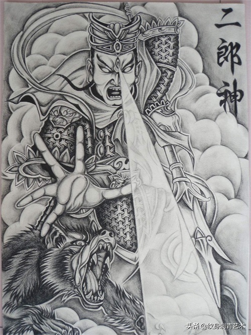 凶残二郎神杨戬纹身,三目一开,妖魔鬼怪无处遁形
