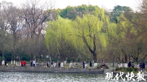 现代快报讯(记者 卢河燕/文 赵杰/摄)“柳条百尺拂银塘,且莫深青只浅黄。”3月16日,南京阳光回归,气温回升,暖阳照耀大地。