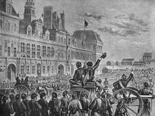普法战争法国战败,第二帝国被推翻,第三共和国建立,临时政府对外屈膝投降,对内镇压巴黎人民起义。