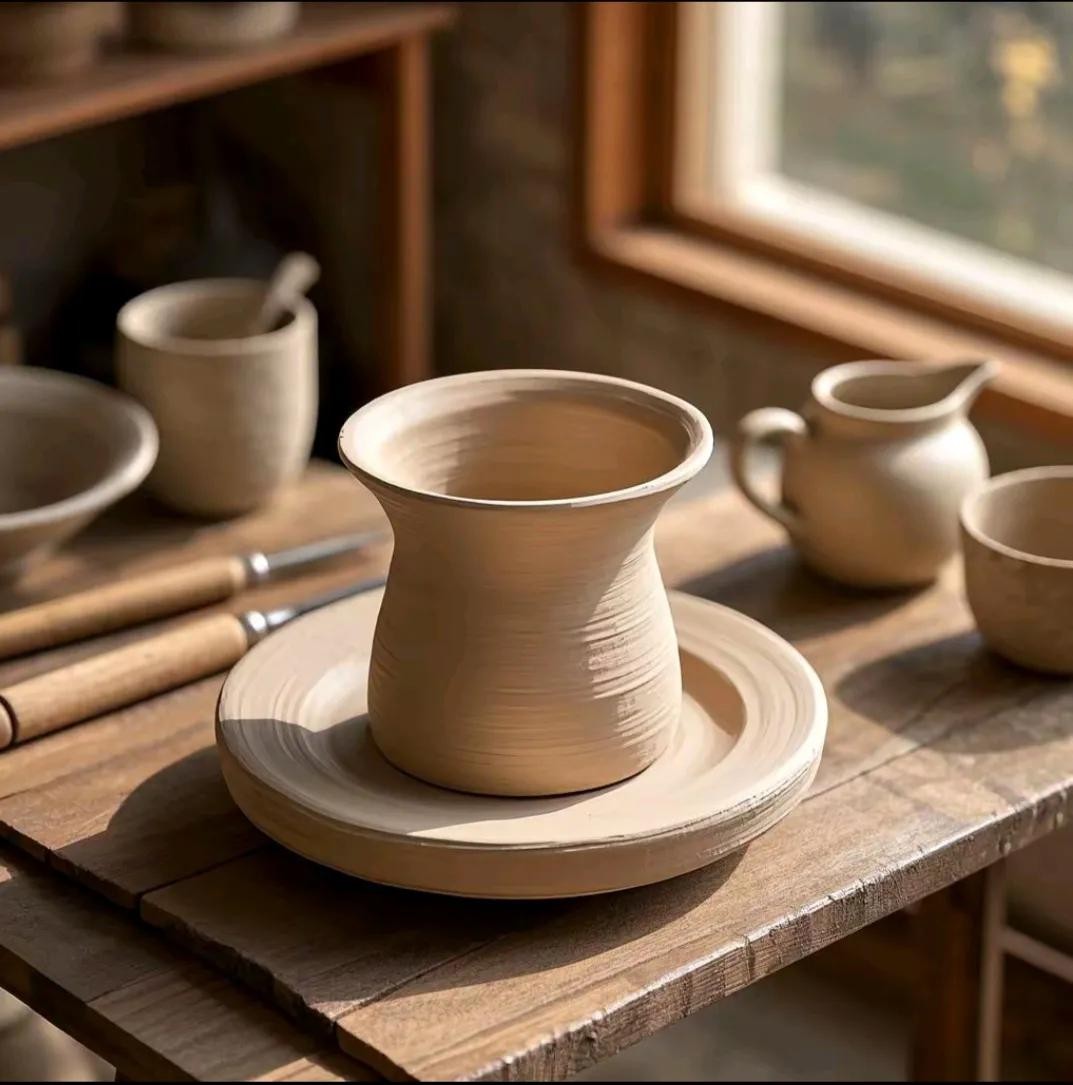- 步骤:选择适合的陶土并充分揉捏以去除气泡,使用手和工具将陶土塑造成杯子、碗等所需形状,将成型作品放置在阴凉处自然干燥,干燥后用砂纸轻轻打磨表面,最后在陶器表面涂上一层釉料,放入陶窑中进行烧制。