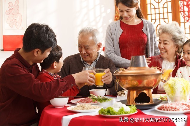 - 吃团圆饭:吃团圆饭是中国传统的过年习俗之一,通常在除夕夜进行。一家人会围坐在一起,享用丰盛的美食,象征着家庭团圆和幸福。