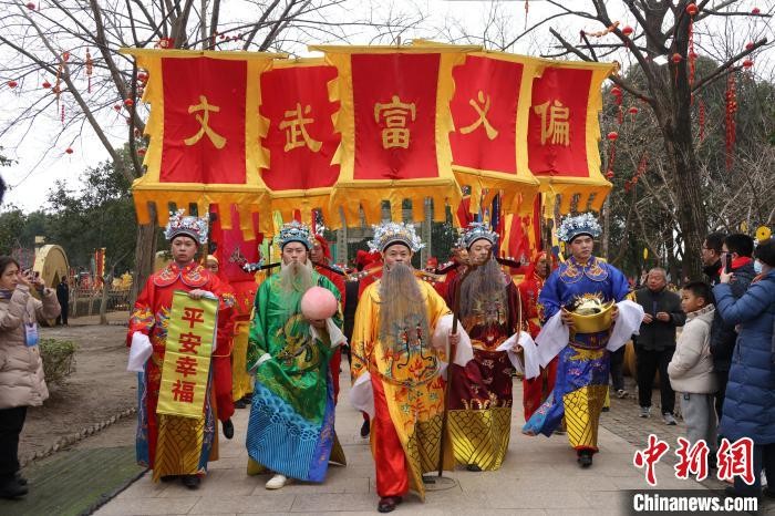 图为财神巡游周庄古镇。中新社记者 泱波 摄
