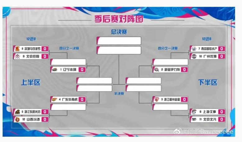 而排在第5至第12的8支球队,则要进行季后赛附加赛,争夺季后赛8强的最后四个席位,从对位分析,预测进入季后赛8强的另外四支球队,估计是广厦,上海,青岛和北控。