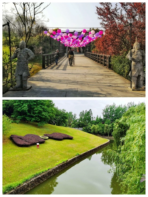 ①公园四面是护城河,登城楼可领略古人风采,环城骑自行车可欣赏春日景色。