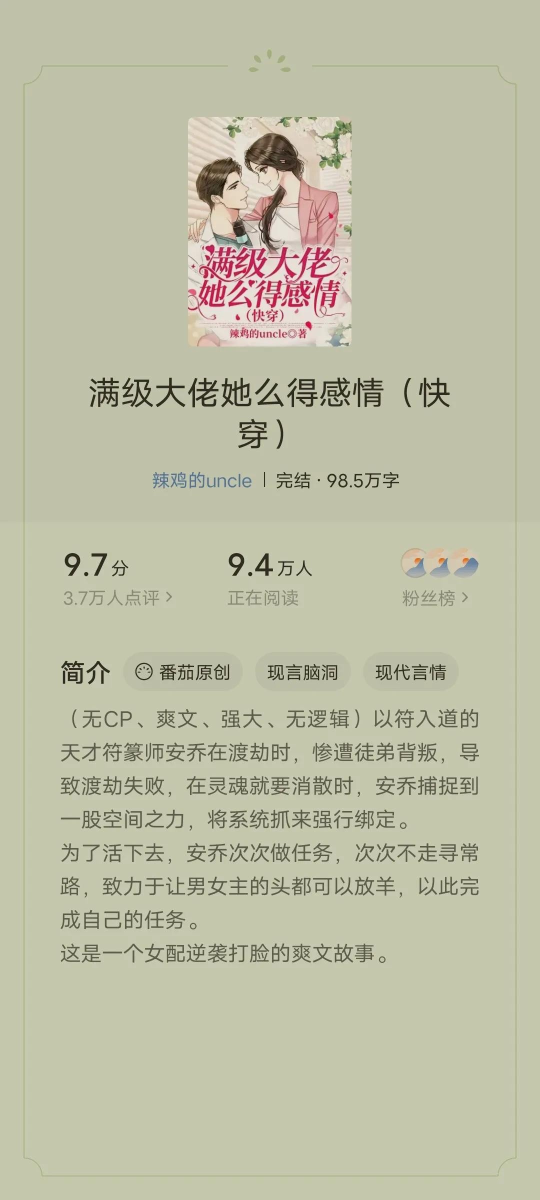 书评:本书已完结,喜欢看爽文的话,可以进来看一看这本书呢就是一个逆袭打脸的过程,看看安乔是怎么不走寻常路的完成任务。