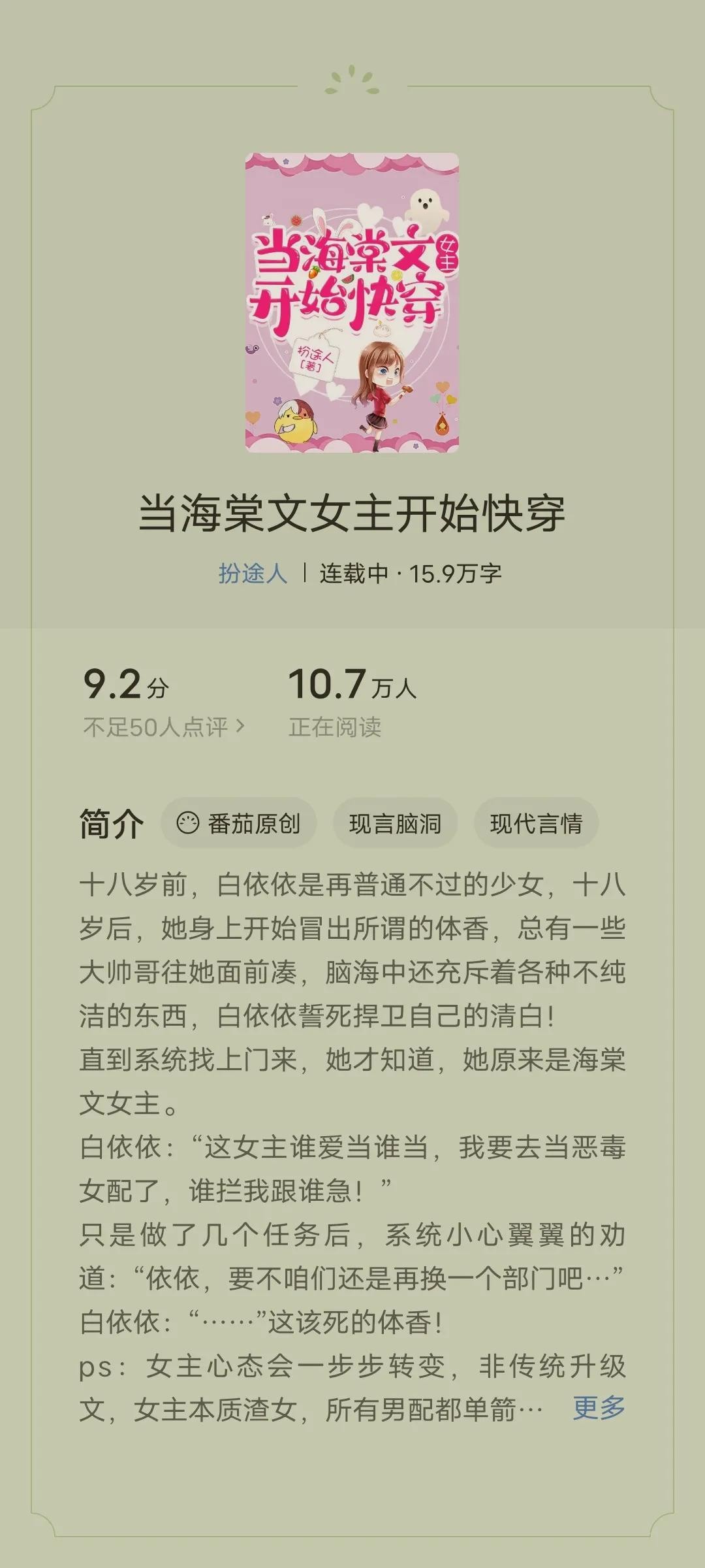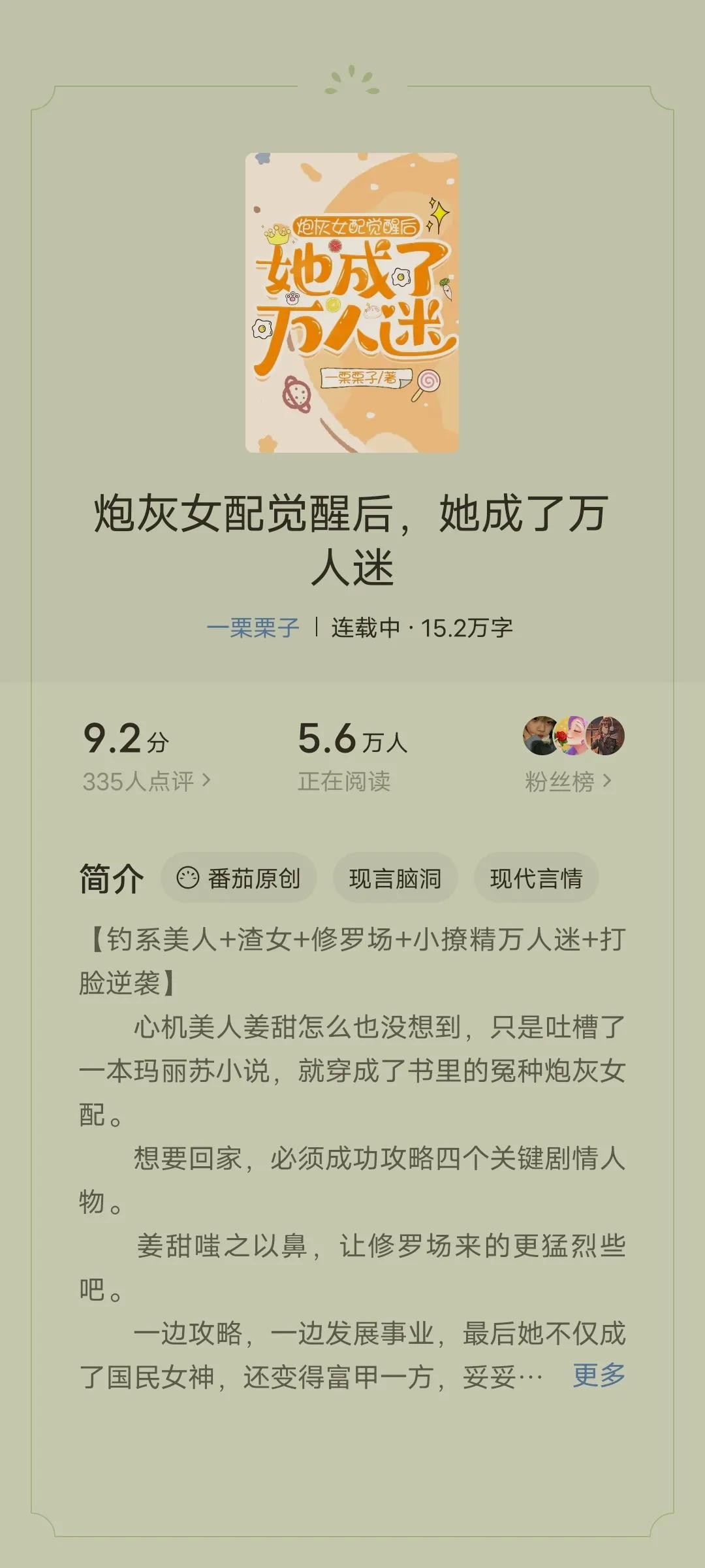 书评:本书还在连载中,喜欢看渣女文的不能错过哦!