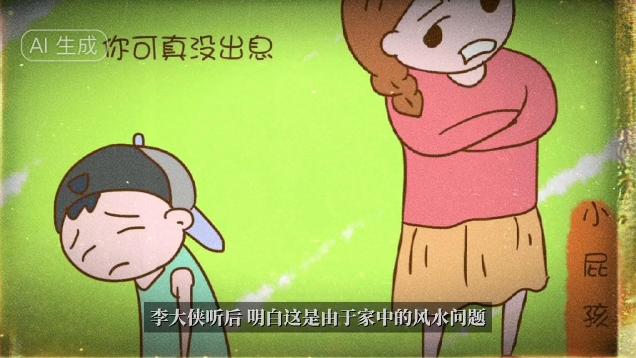 话说在一个古老的山村里,有一位名叫李大侠的风水先生。李大侠天生的神算子,给村民们看风水的同时还教他们如何祈求平安吉祥。有一天一位村民找到了李大侠,告诉他家里的风水出现了问题,家里的东西总是乱堆乱放,而且夫妻之间总是因为琐事而争吵。