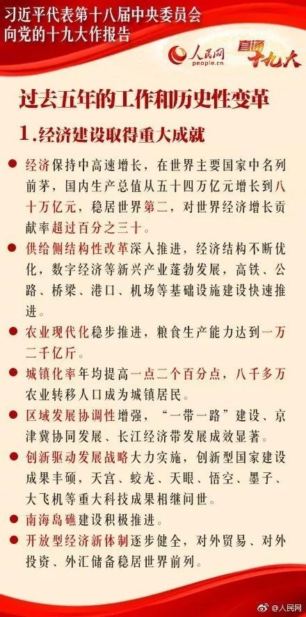 十九大报告要点:过去五年的工作和历史性变革