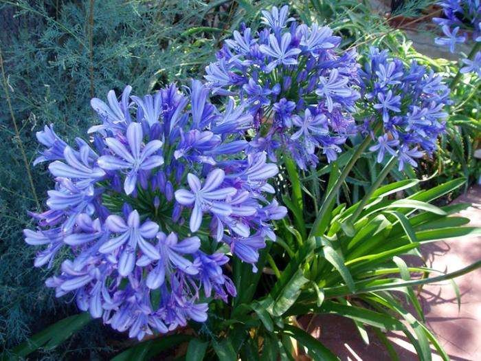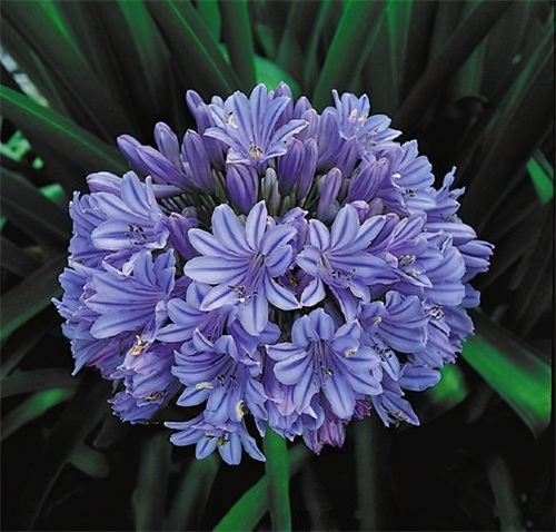 形态特征:多年生草本,株高50-70厘米。叶二列基生,舌状带形,光滑,浓绿色。花葶自叶丛中抽出,伞形花序顶生,小花钟状漏斗形,蓝色或白色。蒴果。