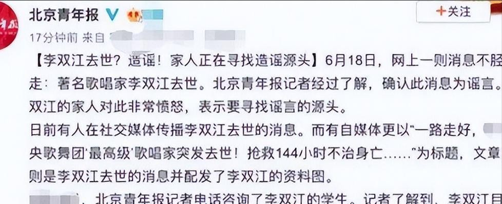 近日,李双江的突发疾病引发了广大粉丝的关注。然而,针对李双江病逝的消息,官方媒体进行了求证并公布了真相。