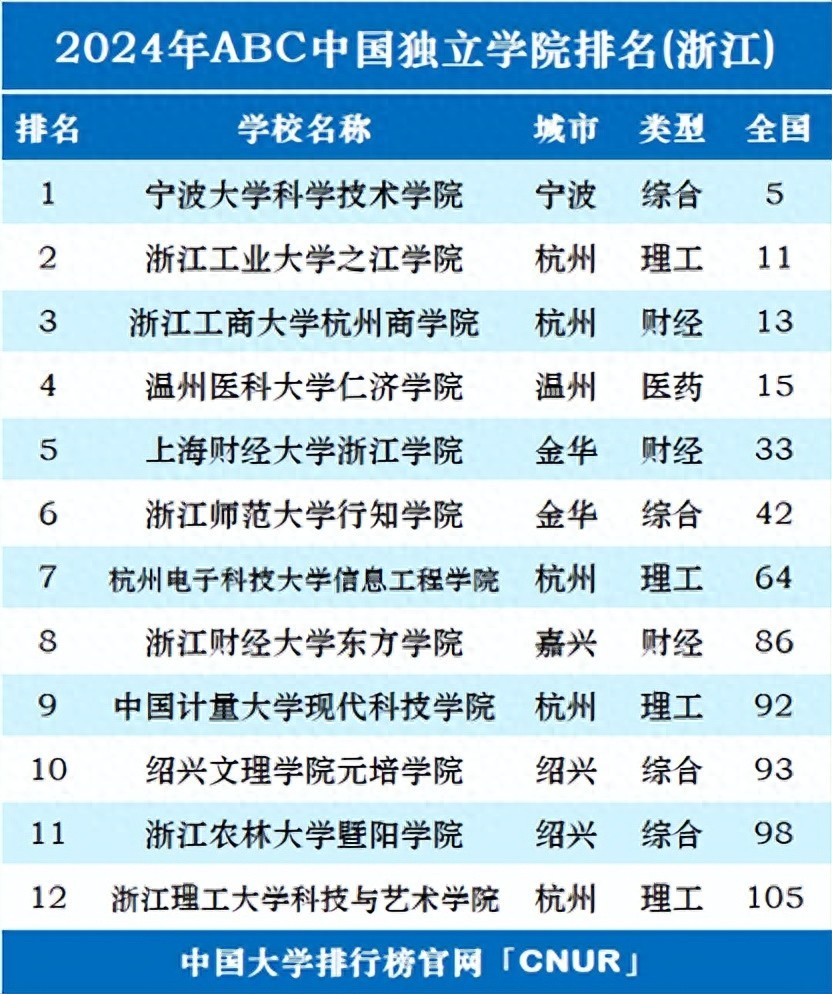 2024年ABC中国独立学院排名已正式发布,共有139所独立学院上榜,其中浙江上榜12所,11所进入2024年中国独立学院百强。