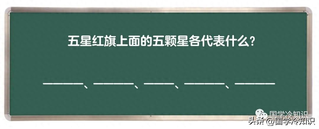 中国国旗中的大五角星代表中国共产党,四颗小五角星代表工人、农民、小资产阶级和民族资产阶级四个阶级。旗面为红色,象征革命,星呈黄色,表示中华民族为黄色人种。