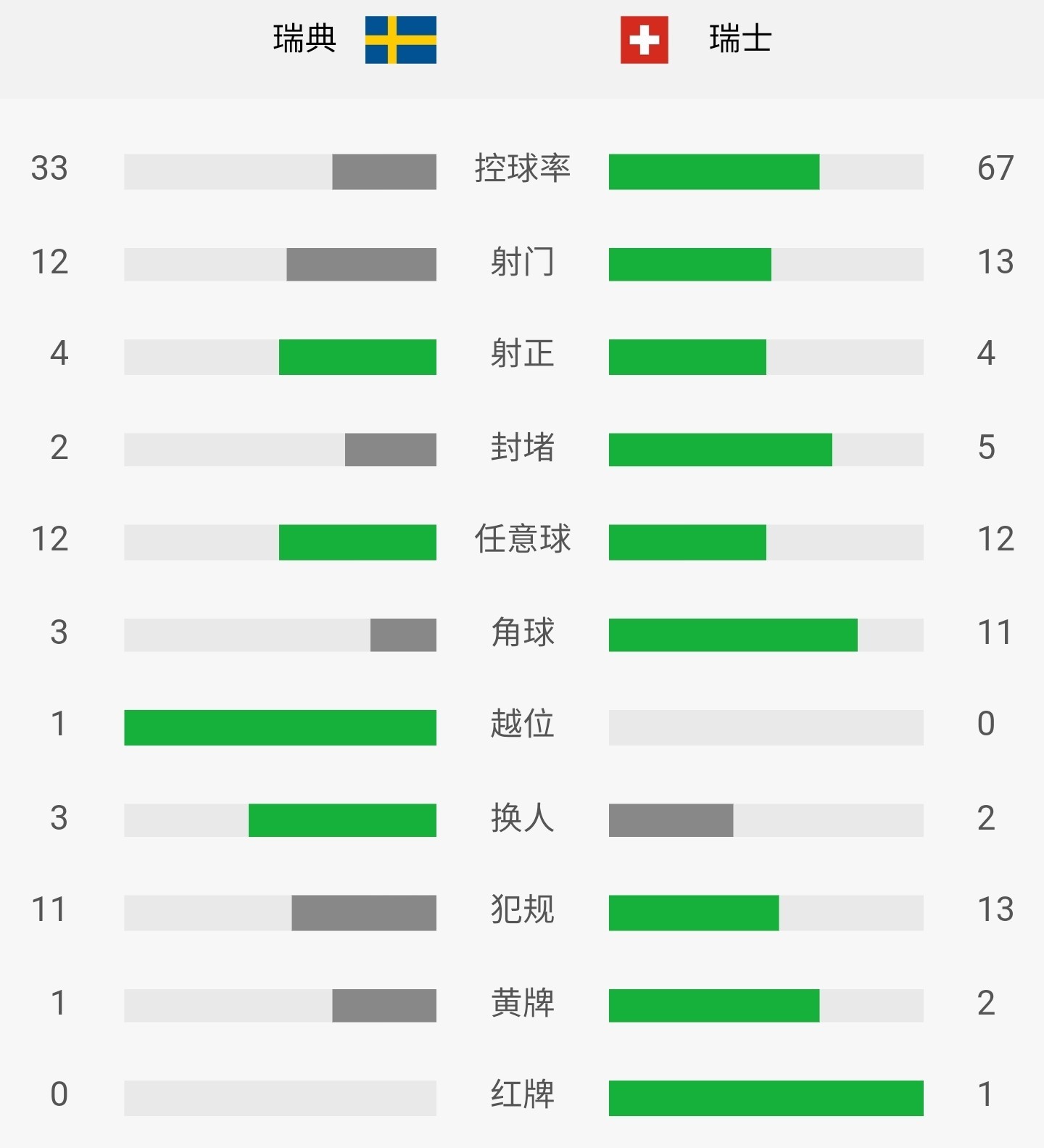 第66分钟,福斯贝里进球,瑞典1-0瑞士。