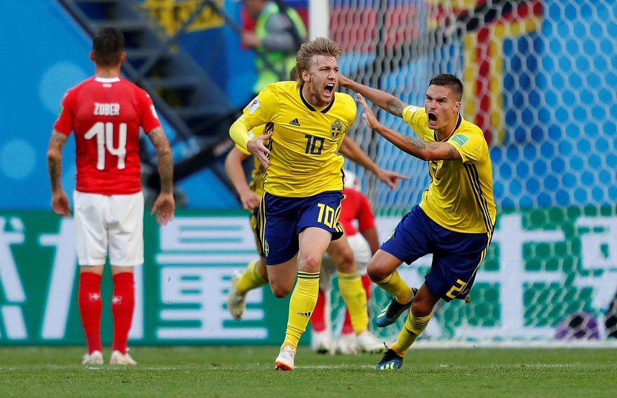 瑞典1-0瑞士晋级八强,福斯贝里折射建功又献门线解围