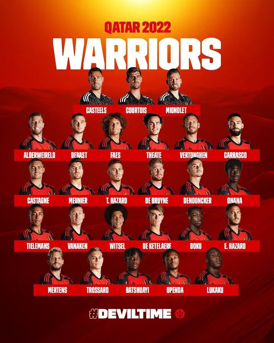比利时世界杯大名单:德布劳内领衔!阿扎尔、卢卡库入选