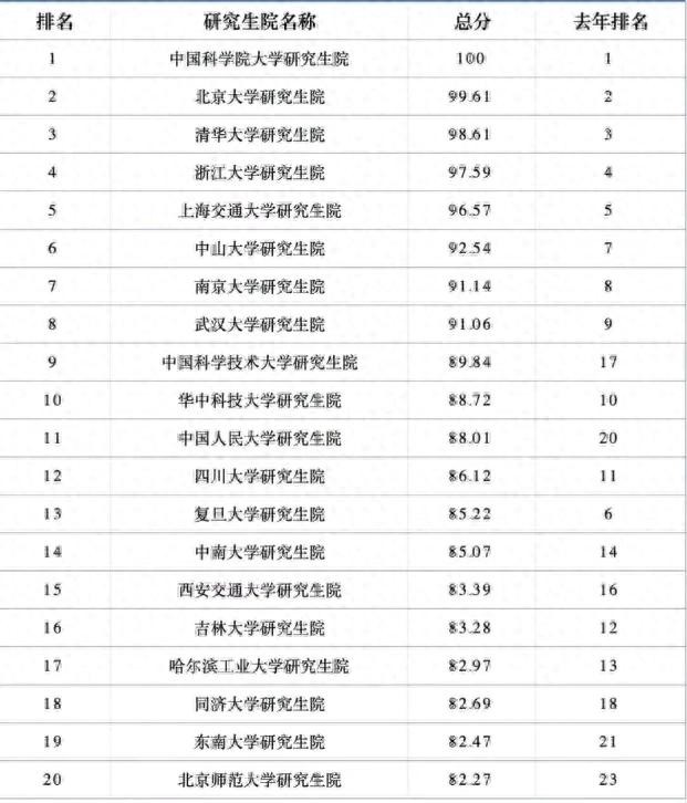 如果把各研究生院校总分设为100分,根据综合实力考量,排出我国研究生院校前20名(仅供参考)。