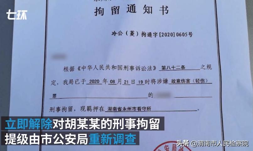 8月26日,湖南永州。“男学生踹伤猥亵女友男子被刑拘”一案有了新进展:市公安局责令分局撤销案件,立即解除对胡某某的刑事拘留,提级由市局重新调查,行拘雷某15日。