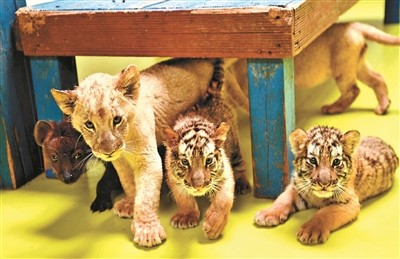 今年暑假,在北京野生动物园萌宠幼儿园展区里,迷你版“狮虎狗”首次亮相,出生仅一个多月的东北虎、斑鬣狗、小狮子在一起嬉戏打闹,萌趣十足,吸引了不少游客前来参观。详见05版 摄影/本报记者 袁艺