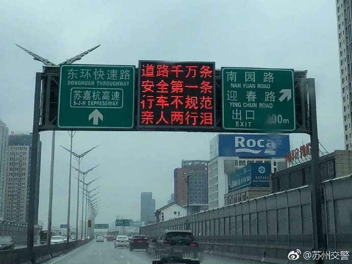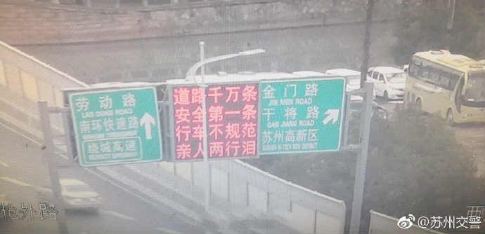 而这两句安全提示已经走下银幕、来到了现实生活中,苏州交警已经率先安排上了: