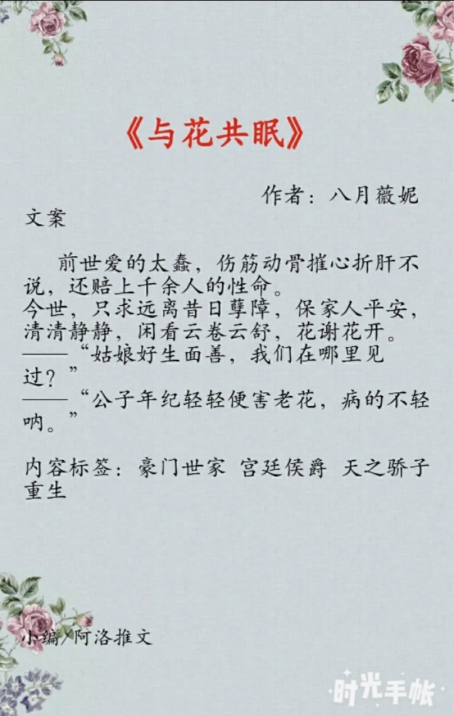 1、《与花共眠》作者:八月薇妮
