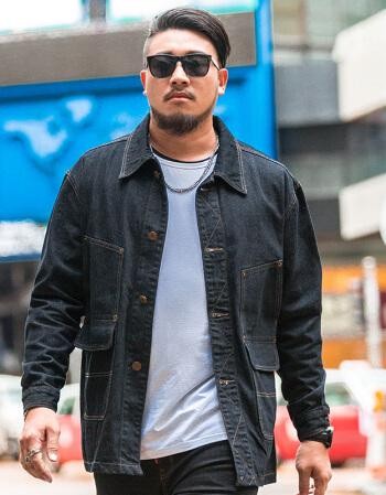 避免面料过于柔软贴身的衣物,毕竟胖子浑身的曲线太多,更需硬挺的直线来修整方向。