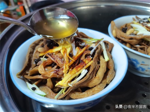 这里为了能够更入味儿,特意熬了一些大料汁浇在上面,然后放入适量酱油提色。