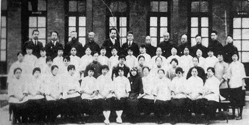 李大钊(后排左三)与北京女子高等师范学校学生合影