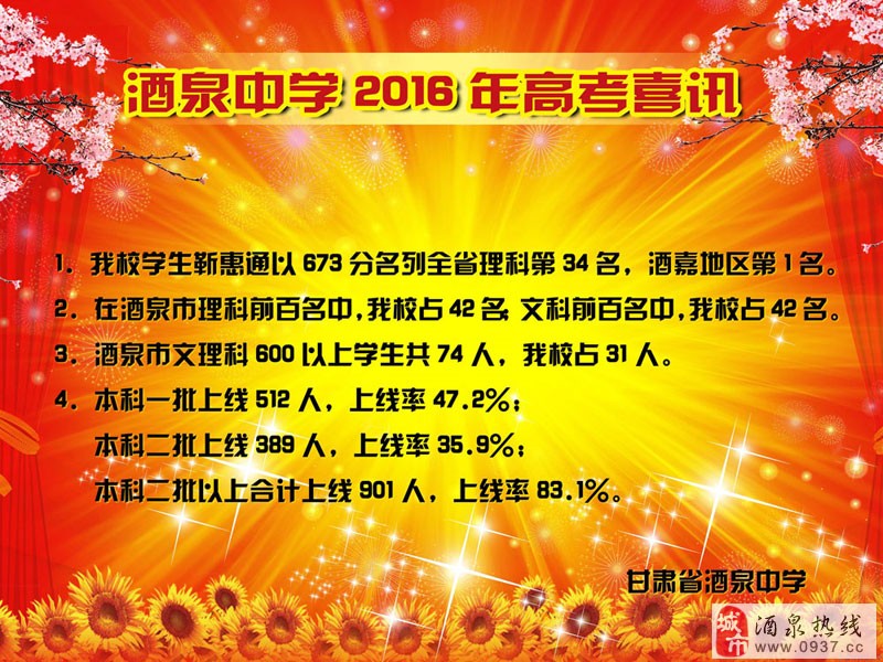 酒泉中学2016年高考喜讯