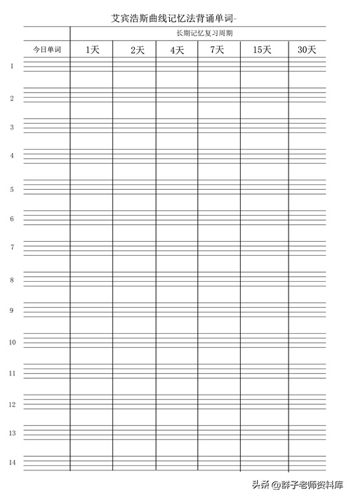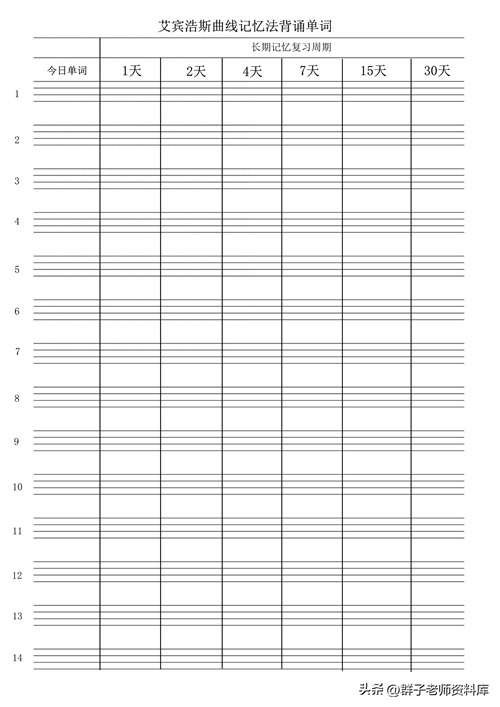 自制艾宾浩斯单词记忆表 完美记忆单词