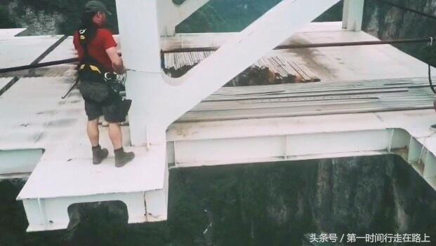 拥有多项世界记录张家界大峡谷玻璃桥上新建了最高的蹦极平台。来自国外的几位极限运动爱好者, 在桥上准备试一下。期待张家界大峡谷蹦极早点对外开放,相信很多朋友都想试一下也包括小编。