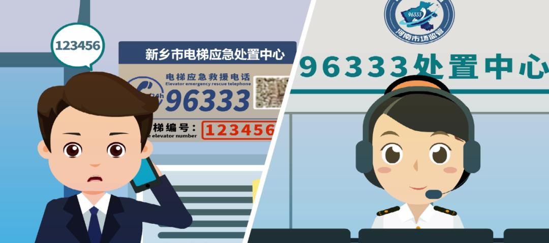 当您遇到电梯困人故障时,请拨打应急处置报警电话96333,向接警人员准确报出困人电梯的红色六位数字救援编号,接警人员核实信息后,将第一时间指派维保单位进行施救。