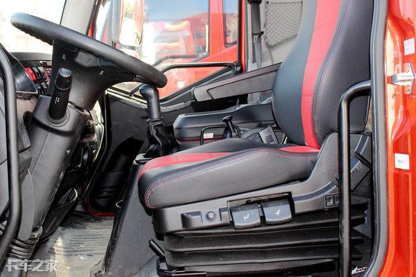 除了上卧铺和储物箱的改变之外,这款车的主驾驶座椅也是非常有看点,气囊减震带有座椅加热通风、腰背部支撑功能,可以很好的缓解长时间驾驶导致的疲劳,座椅面料的选用也是非常讲究,皮革材质的座椅手感非常棒,另外黑红撞色搭配也是格外漂亮。