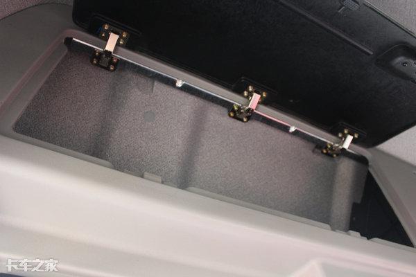 高顶驾驶室还有一个好处,那就是“额头”部位的储物空间,冬季跑车在储物箱里放置衣物都是没有问题的。