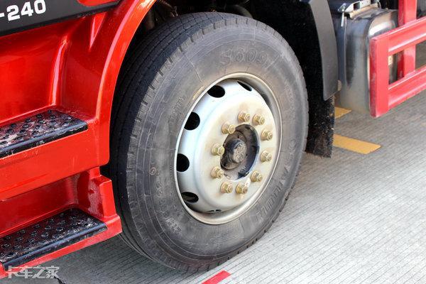 轮胎方面,这款车搭载的是275/80R22.5型号的真空胎,国内中型卡车装配这个型号真空胎的并不多,这也算是这款车的一大亮点。根据这款车的发动机转速、变速箱最高挡速比、后桥速比和轮胎型号,大致可以算出,它在1500-1700转的转速区间内,车速可达到82-93km/h。