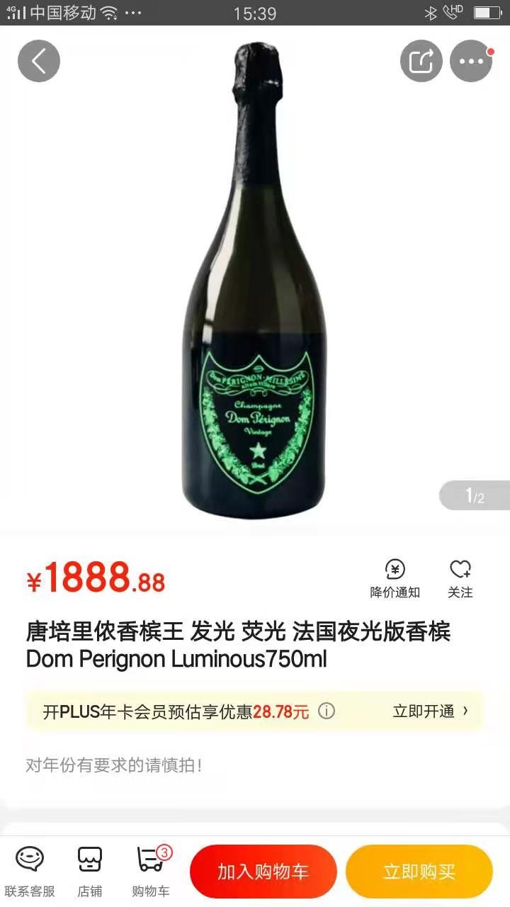 被称为“国民老公”的王思聪最喜欢的一款酒就是这款香槟王,京东网价格为1888元。它在夜场里显得极其抢眼,因为它的蓝色荧光标实在刺眼的不得了。在一定程度上促进了香槟王在中国的名气!